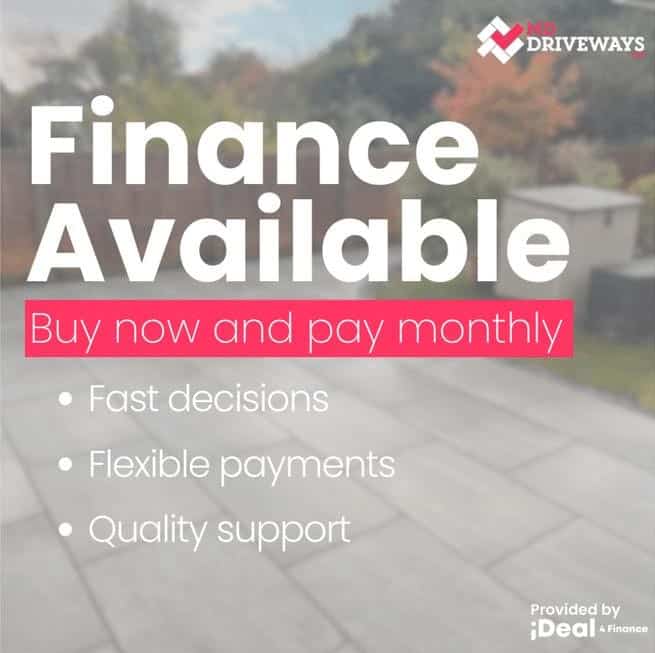 M D Driveways Limited is an introducer appointed representative of Ideal Sales Solutions Ltd T/A Ideal4Finance. Ideal Sales Solutions is a credit broker and not a lender (FRN 703401). Finance available subject to status. The rate offered is always provisional and will depend upon your personal circumstances, the loan amount and term.